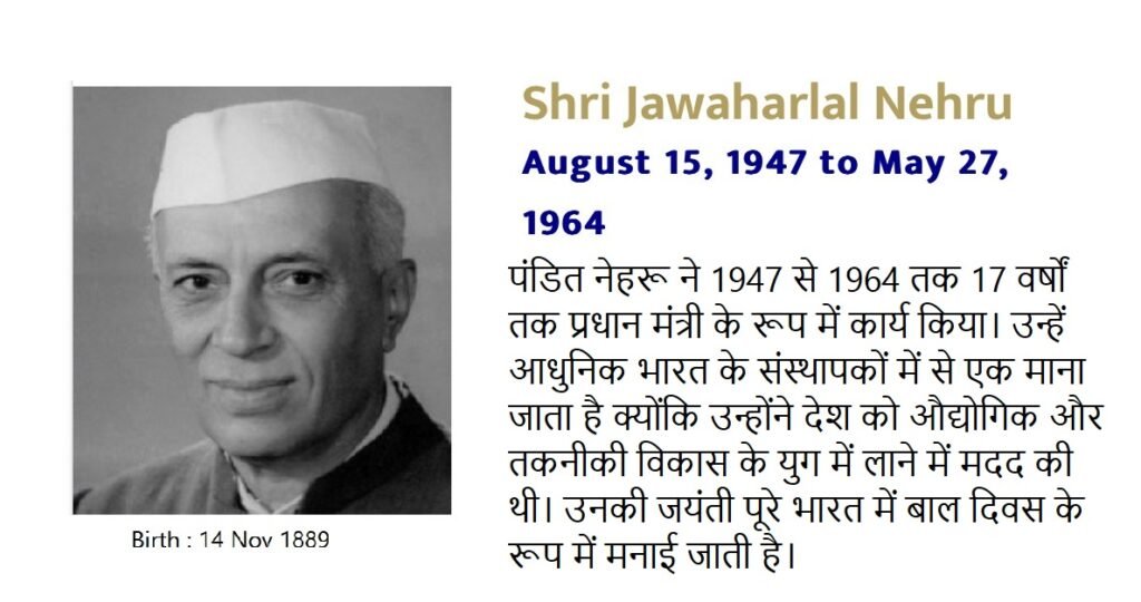 - पंडित जवाहरलाल नेहरू भारत के पहले प्रधानमंत्री थे